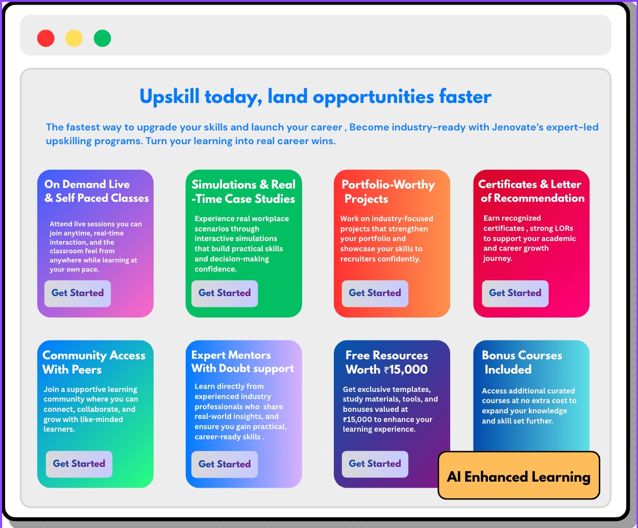 Unlock the power of our comprehensive suite of programs designed to transform your upskilling journey. We have everything you need to stand out in today's competitive job market.